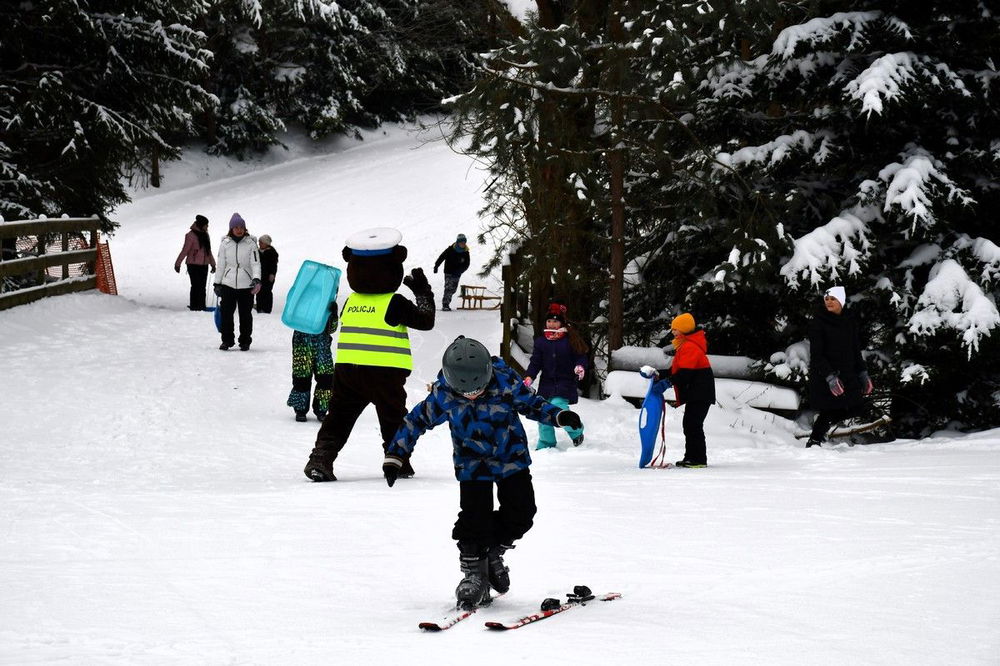 Po części edukacyjnej dzieci miały możliwość ćwiczeń na nartach, deskach i sankach pod okiem instruktora oraz policjantów z komisariatu w Nowym Żmigrodzie. Mundurowi zachęcali także do udziału w konkursie plastyczno-filmowym Zimowy dekalog.